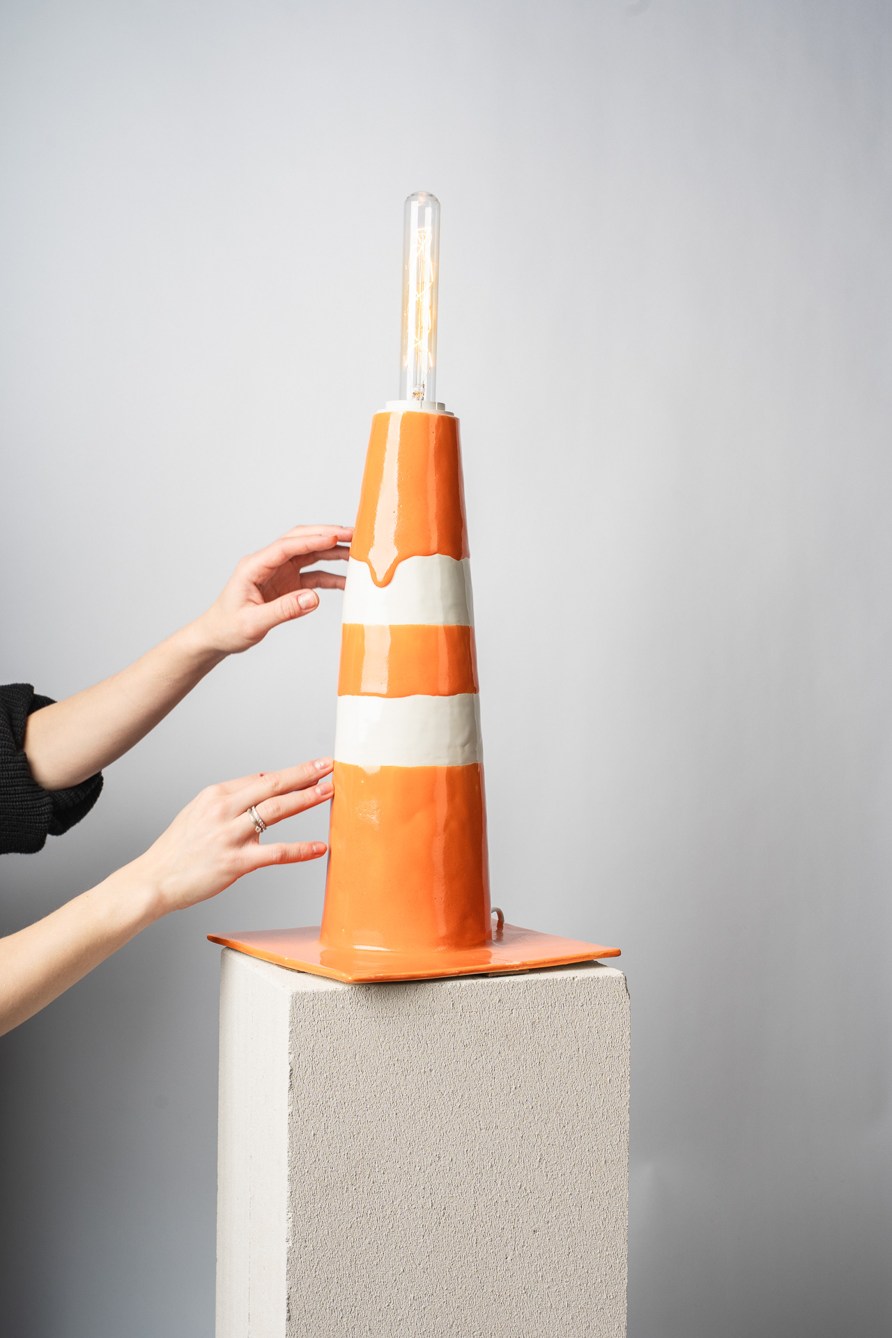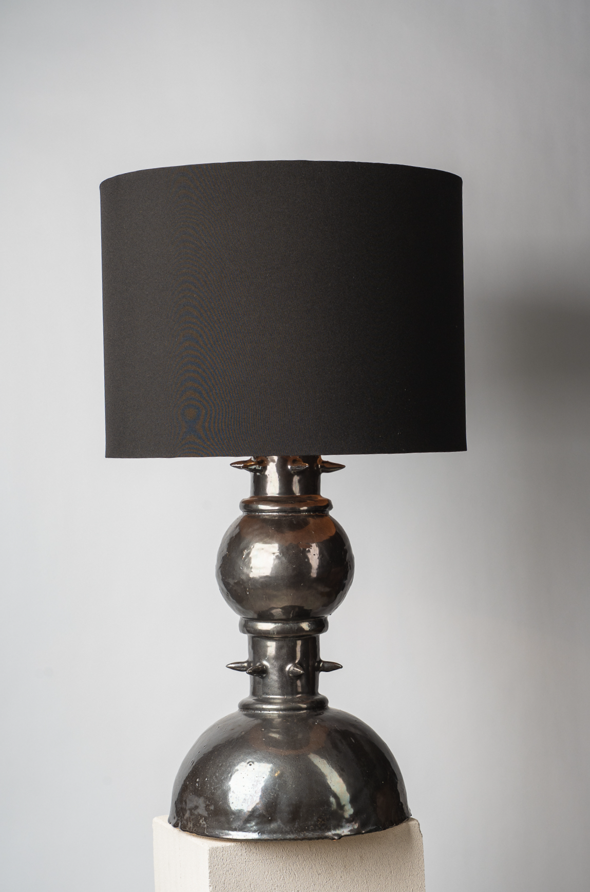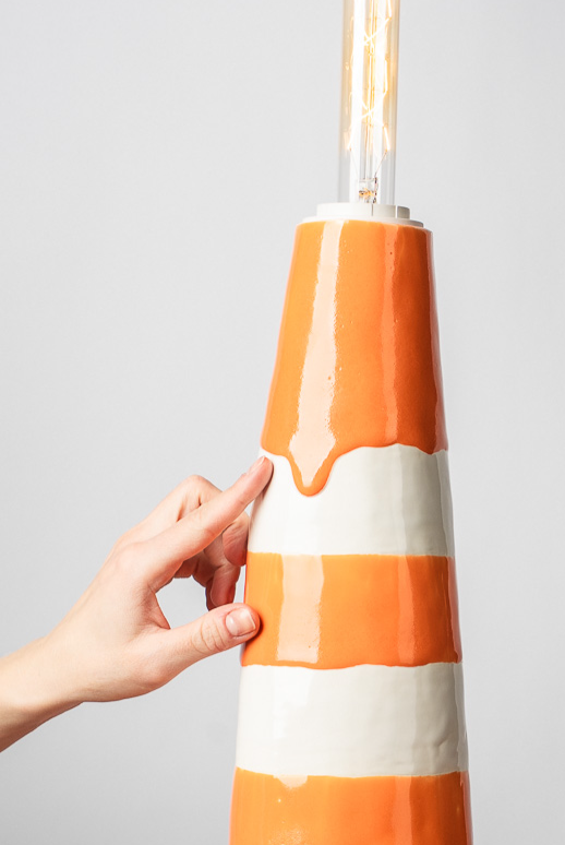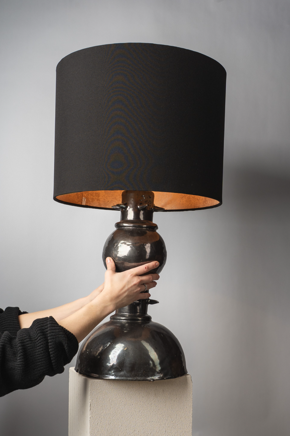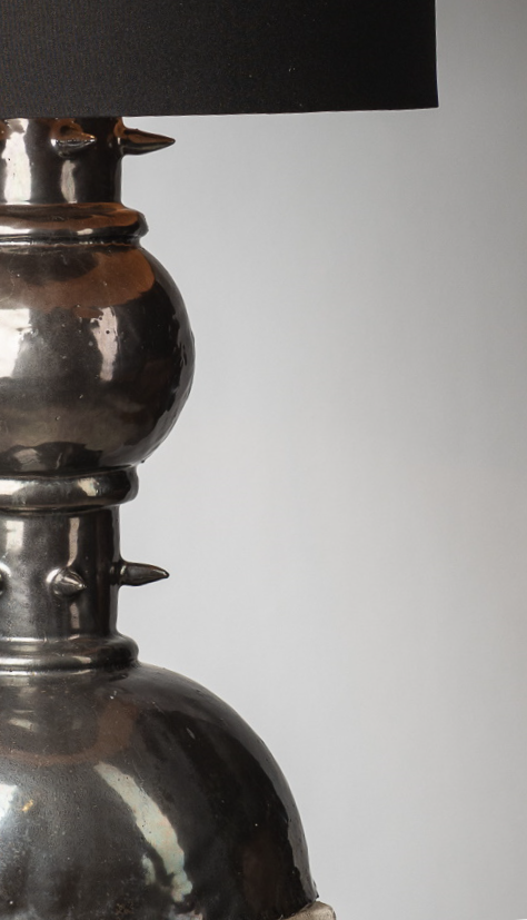 В этой работе я обращаюсь к теме телесности как первоисточника тепла. Основание светильника напоминает фрагмент человеческого тела — мягкого, округлого, живого. Небольшие выпуклые формы на поверхности читаются как груди, однако не копируют анатомию буквально, а становятсяпластическими метками женского начала, энергией той самой поддерживающей силы, которую в искусстве всегда связывали с материнством, телесностью и природной заботой. Золотые соски — это не украшение, а жест уравнивания тела и драгоценности. Здесь я поднимаю тему ценности: что именно в нашем теле считается достойным внимания, уважения, сохранения? Золото фиксирует то, что обычно скрыто, переводит интимное в статус значимого. Светильник не стремится к провокации. Его задача — показать тело как источник света. Когда абажур начинает светиться, поверхность основания оживает: теплые блики скользят по округлым формам, превращая их в часть самого светового потока. Тело становится медиатором света — тем, что рождает и передаёт тепло дальше. Работа балансирует между объектным дизайном, скульптурой и телесной метафорой, создавая ощущение интимности, мягкости и одновременно силы.