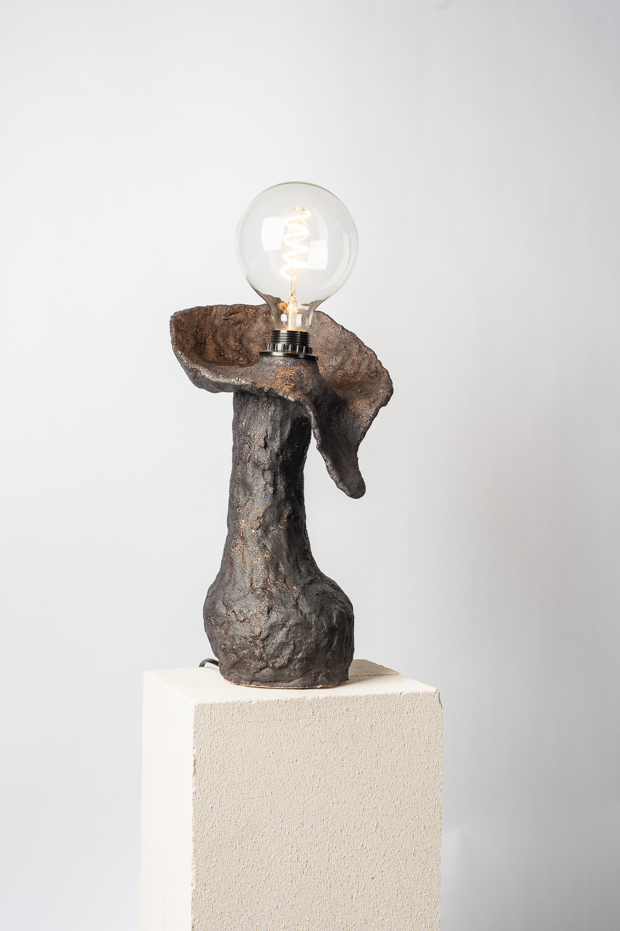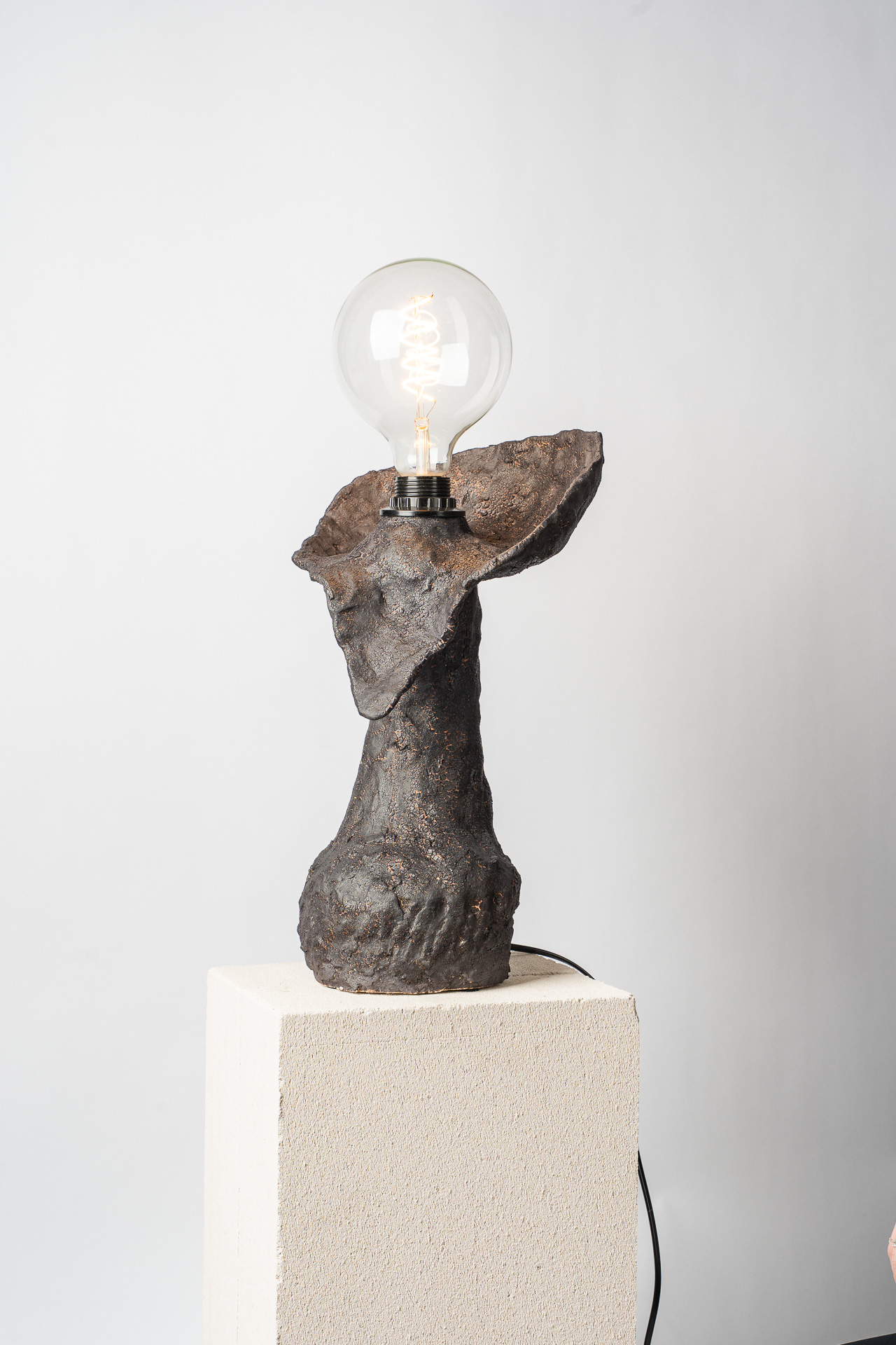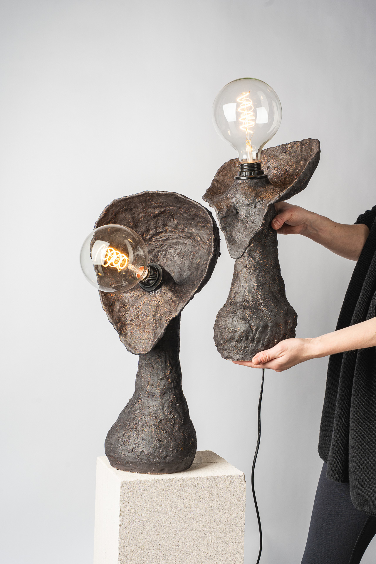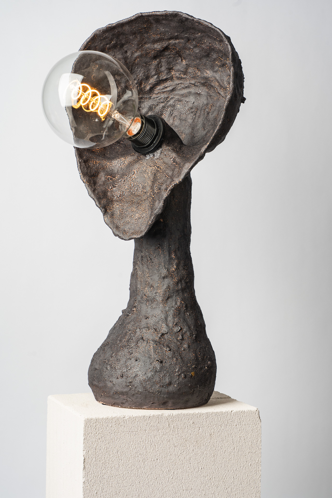 Это тело — как сосуд прожитого. В нём нет стремления к симметрии или совершенству — только тишина принятия. Одна грудь остаётся знаком того, что красота может быть неполной, не совершенной, но истинной. Свет внутри — не просто лампа, а дыхание. Он живёт в глине, как память о движении, о тепле рук, о присутствии. «Плоть и свет» — о хрупком равновесии между материальным и духовным, между формой и тем, что невозможно сформовать, о балансе между телом и тем, что живет внутри него. Когда-то, еще в детстве, я увидела у одной женщины неидеальность, спрятанную в мягких складках домашнего халата — след прожитой боли, которую она несла спокойно и буднично. Одна грудь была отрезана. И с тех пор во мне живёт это чувство: плоть бывает разной и далеко не идеальной